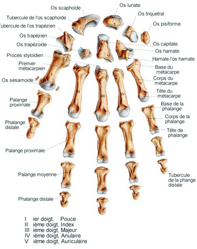 - Rhizarthrose importante (port nocturne), tendinite de De Quervain (extenseurs du pouce).